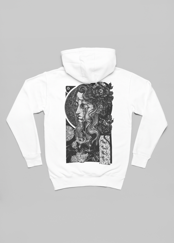 Step into a world where art, mystery, and identity collide with the ESMO “Eternal Vision” Hoodie. Minimalist on the front with a clean ESMO logo, and breathtakingly intricate on the back — this hoodie features a surreal fusion of life, decay, emotion, and cosmic energy.