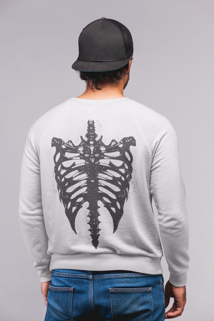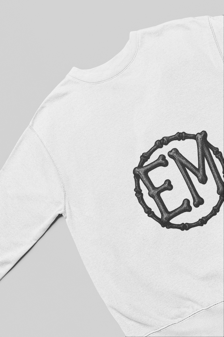 The EM “Ribcage” Heavyweight Sweatshirt brings together clean streetwear styling with an artistic edge. The front features a subtle hand-drawn EM logo, while the back showcases a striking ribcage spine graphic — a symbol of strength, individuality, and raw expression.