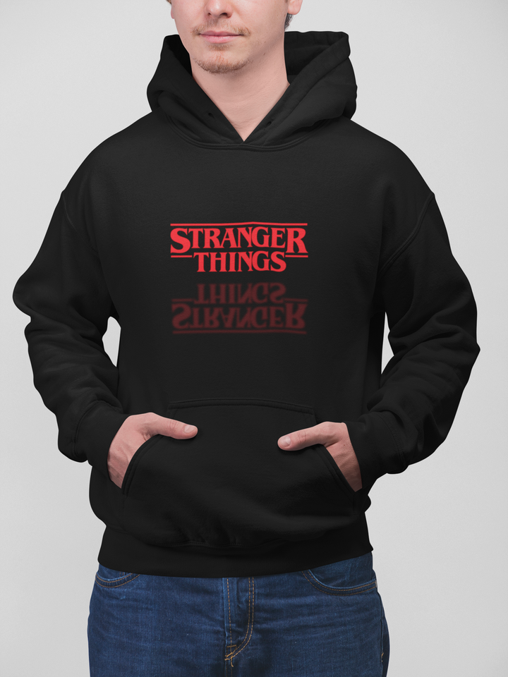 Step into the darker side of streetwear with The Upside Black Hoodie. Designed with a bold retro-red graphic on deep black, it captures the eerie, nostalgic energy of 80s sci-fi. Clean on the front, striking on the back, it’s made for those who love mystery, night adventures, and stories that blur the line between worlds.